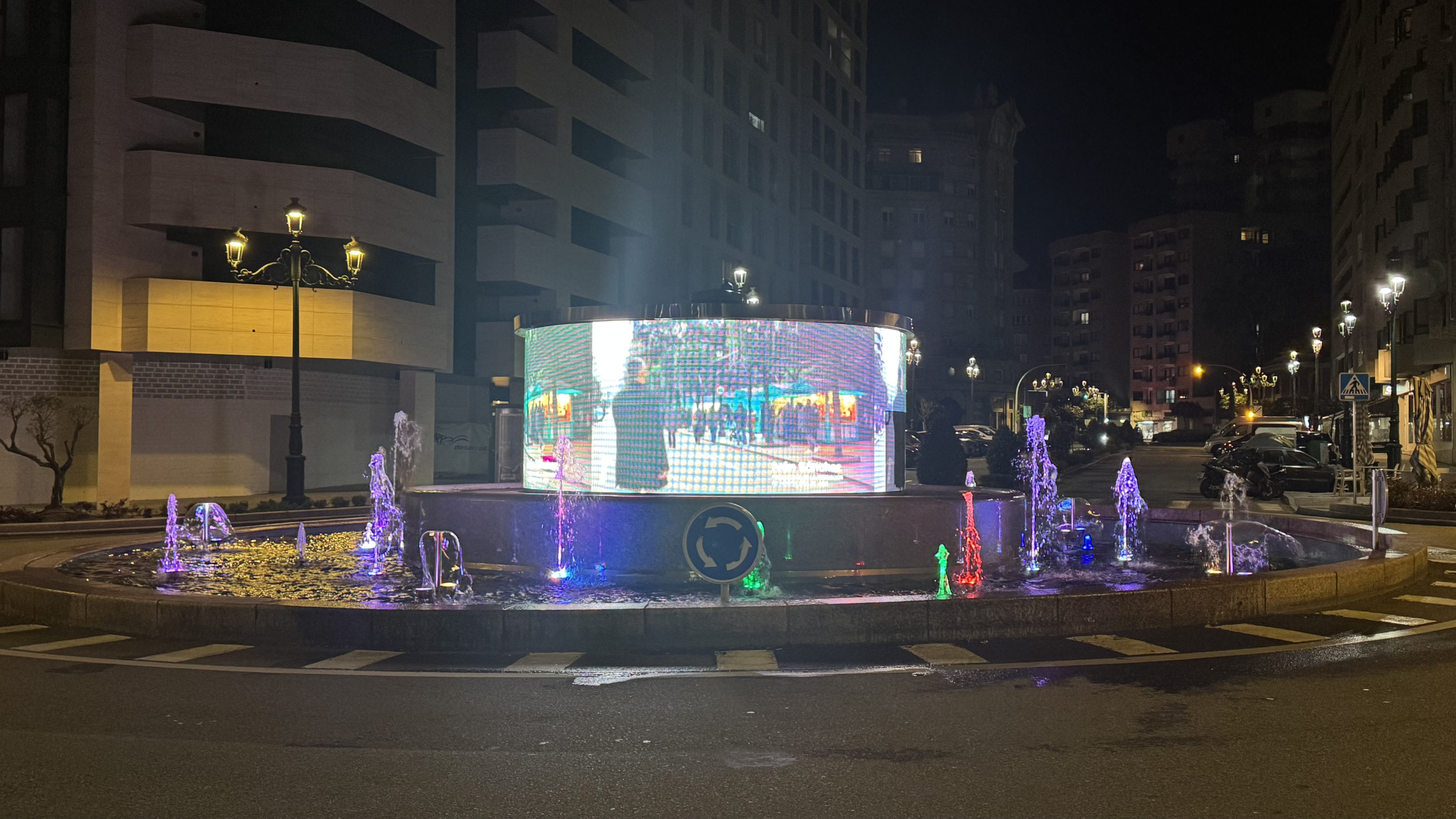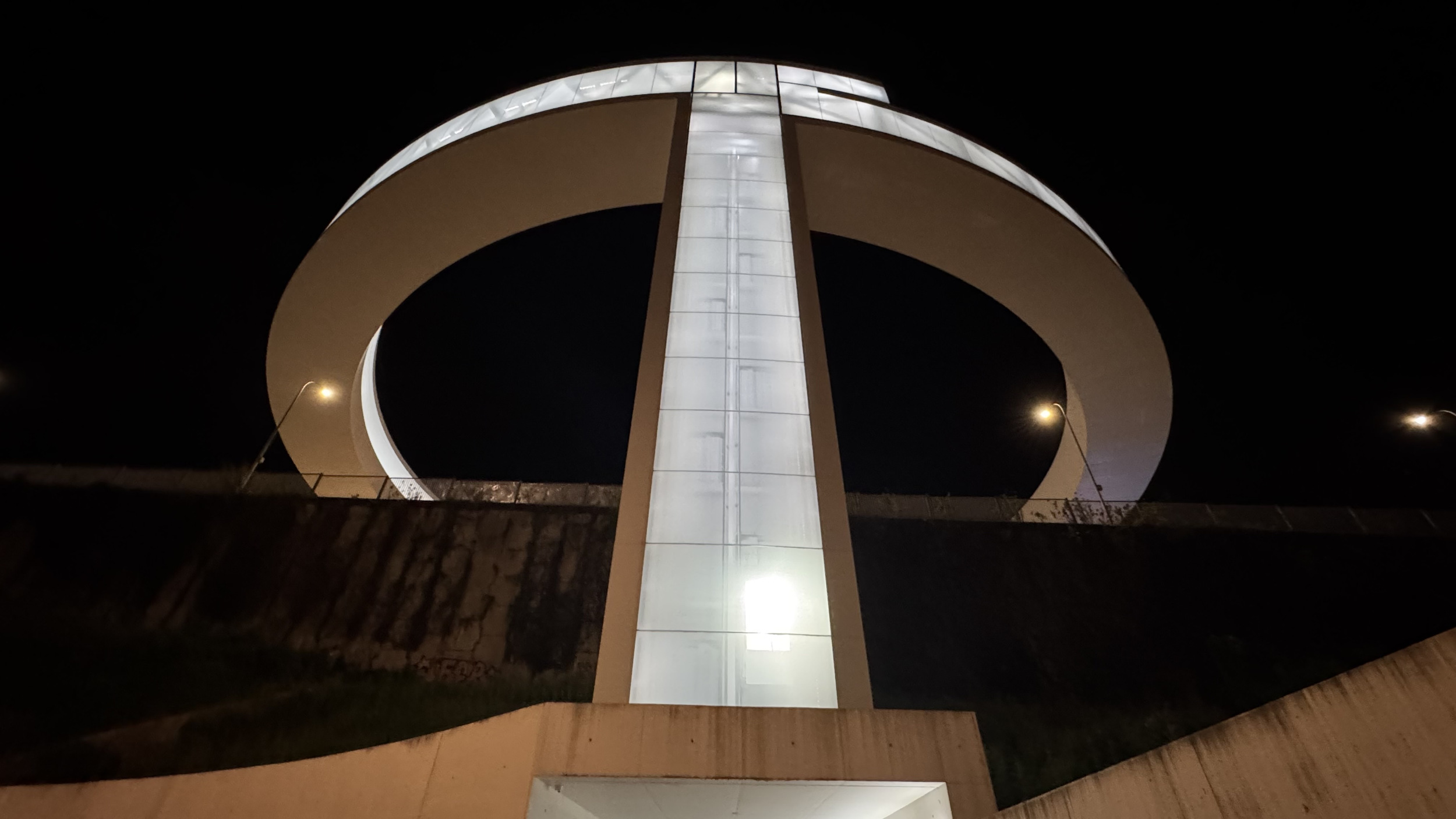 Por la noche, de la mano de Víctor Tilve, visitamos diversos puntos altamente contaminados, como la pantalla circular iluminada Ciberfonte de Rosalía de Castro y el ascensor y la pasarela del Halo, excesivamente iluminados por una potente y molesta luz blanca.
